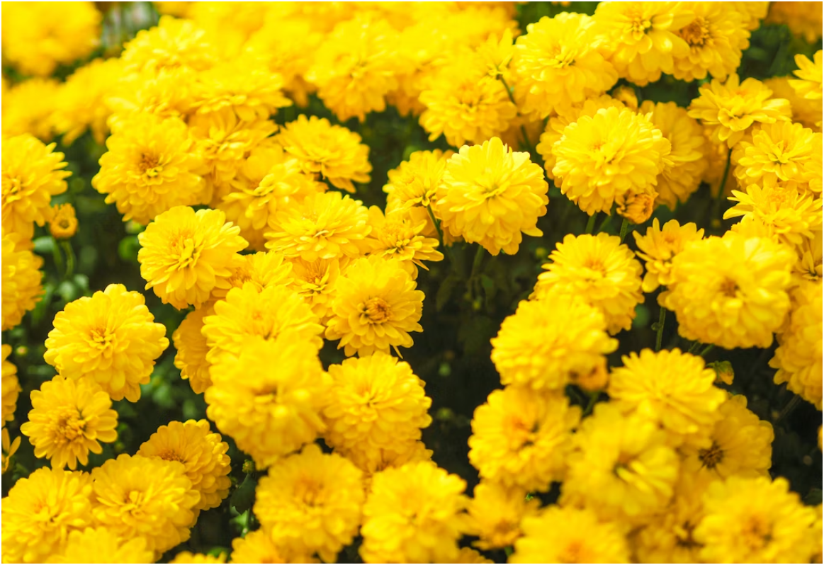 Marigolds are very popular too. They are smaller than sunflowers. But they pack a lot of color. Gardeners really like them because they are helpful. The smell of a marigold keeps bugs away from other plants. If you want low-maintenance yellow flowers, these are perfect for you. You can plant them in the ground. You can also put them in pots. They handle heat quite well and also– do not need water constantly. They just keep blooming until the frost comes.